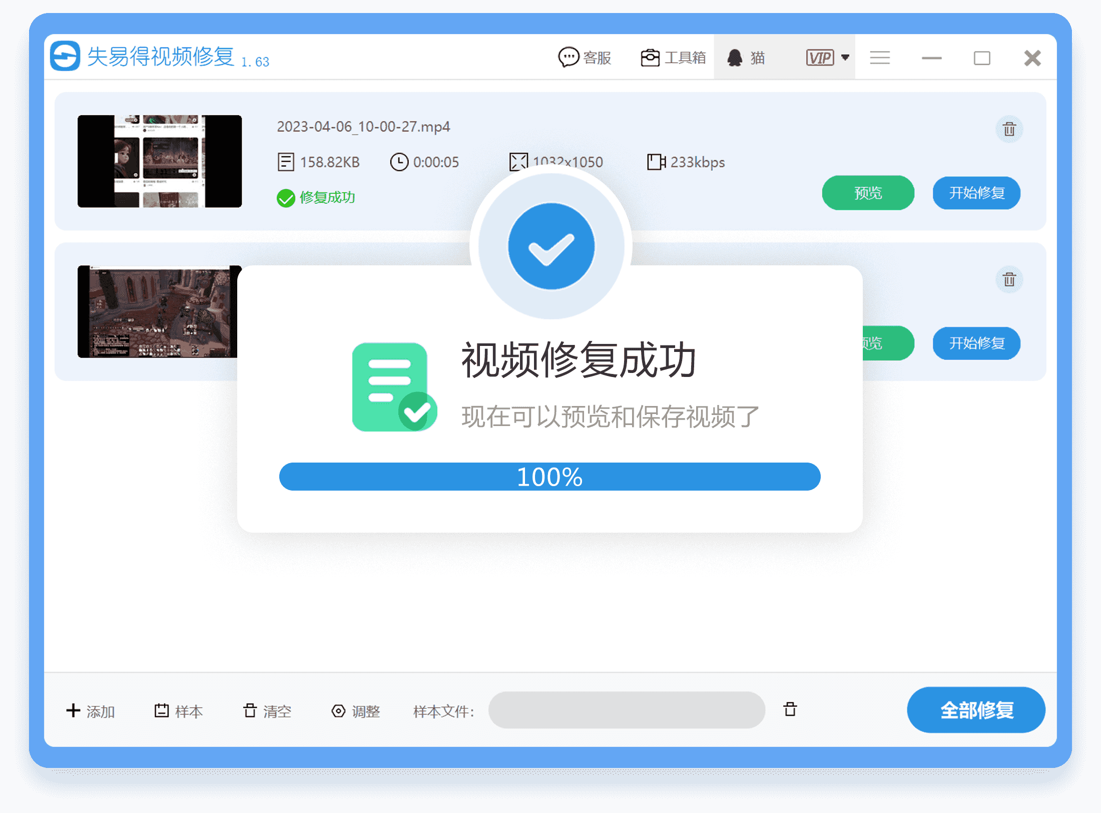 预览修复后的视频,